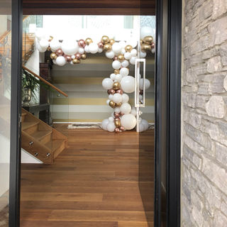 'Organic' is the art of organised choas. Balloons are a mix of different sizes and styles, that come together to form something breath takingly stunning. You can add other embellishments such as fans, puff balls and streamers - there are no rules, no right and wrong. Have what you want - how you want it. What a perfect world!!